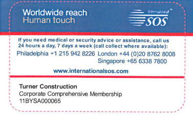 Turner has partnered with International SOS (ISOS) to support Turner employees traveling abroad. International SOS is